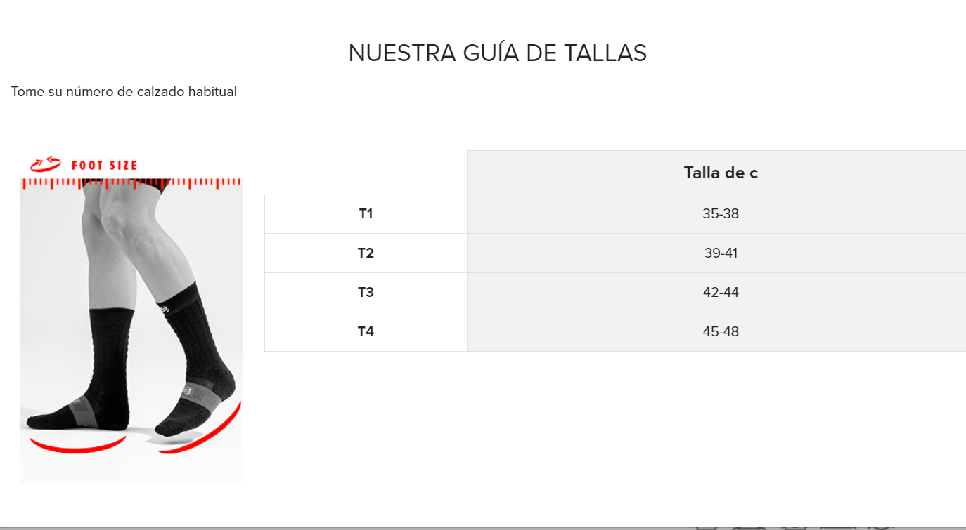 GUÍA DE TALLAS CALCETINES COMPRESSPORT