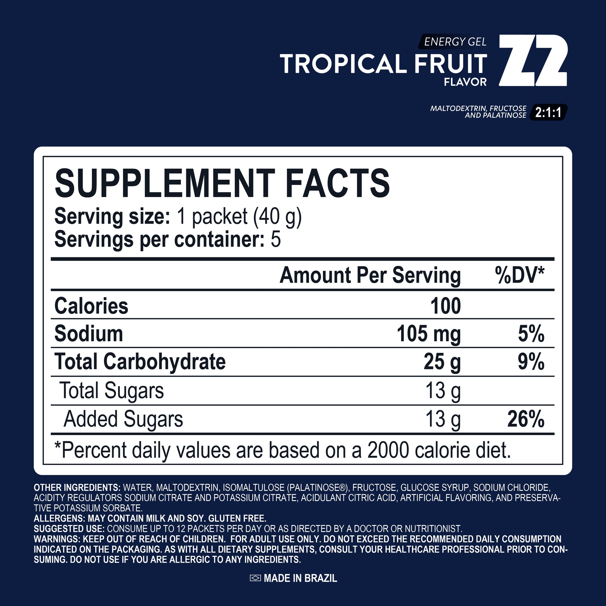 Energy Gel Z2 Tropical Fruit - Geles energéticos sin Cafeina 40g