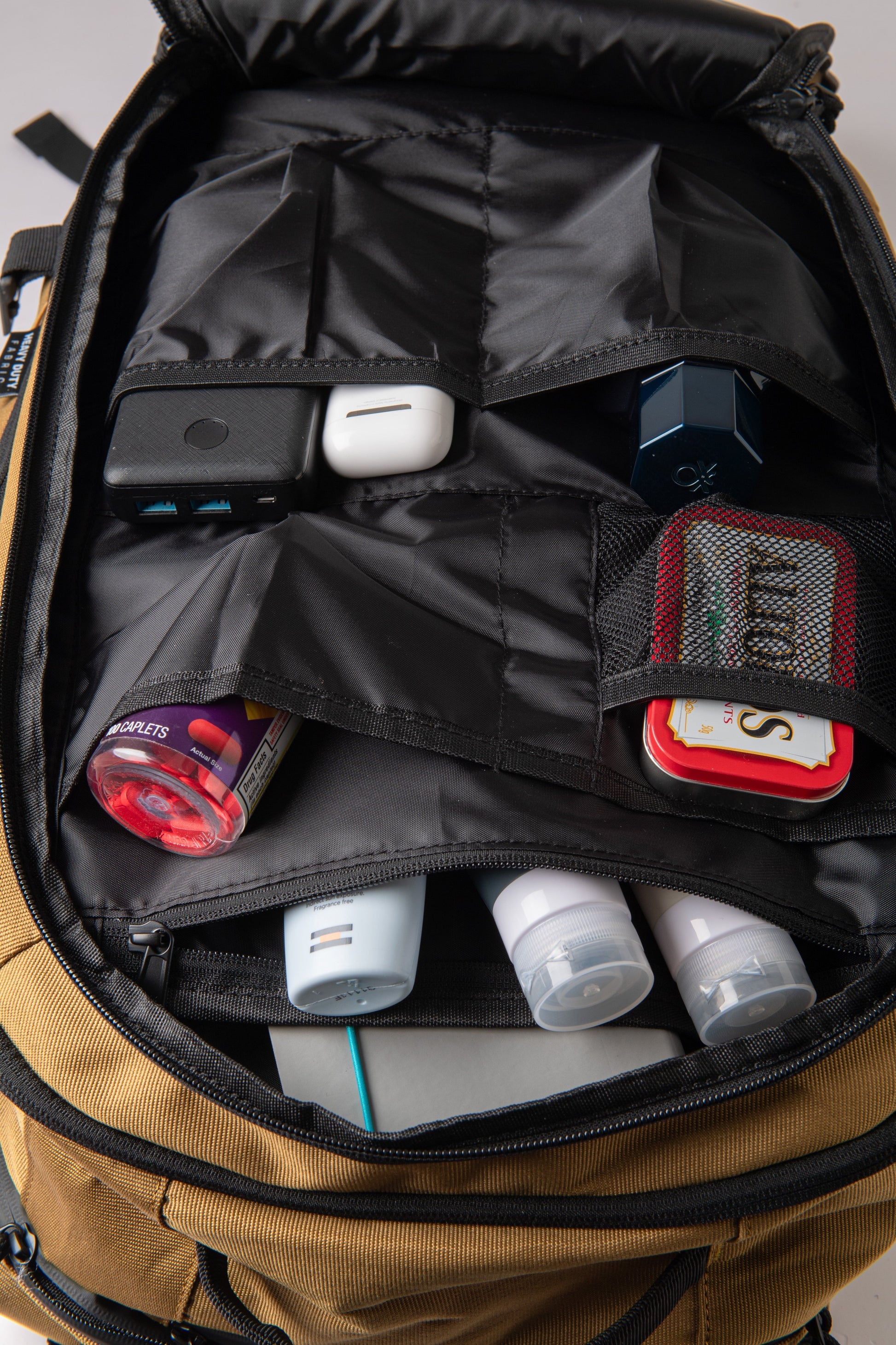 Mochila de viaje con doble apertura completa que permite acceder a todo el contenido sin necesidad de desordenar el interior.