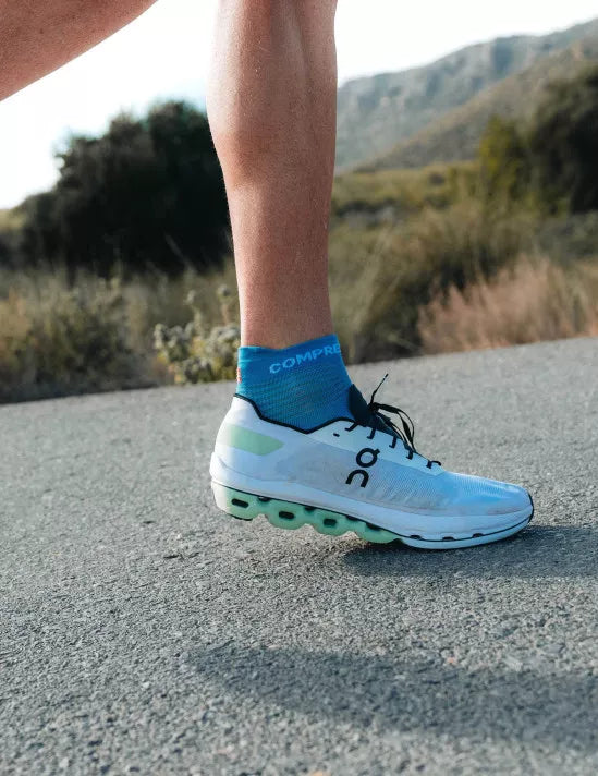 El elegante diseño de este calcetín de alta tecnología es fiel al ADN Compressport de rendimiento, por lo que todo lo que le queda por hacer es salir a la carretera con velocidad, comodidad y clase.
